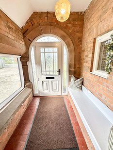 Beautiful entrance porch which was once open to the elements and now usable coved space. It features beautiful brick walls and hand carved sandstone sills. There is beautiful seat facing a large open window. The original floor tiles are in place and a modern composite front door framed by glass panels and a fan light in keeping with the character of the property.