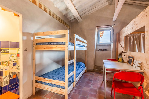 In the hall we also find a small balcony overlooking the mountains on the slopes of Mount Amiata.