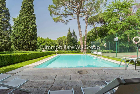 The unit itself is located in the “west wing” overlooking the central circular entrance and fountain. It has kept key historical features of 16th century, including frescoed coffered ceilings, wood parquet floors and a marble fireplace. If you want opulence as well as resort-style living, then this is a perfect solution (especially only being about 45 minutes to the center of Milan). The original listing does not state how many total units are within the villa compound, or how much the annual fees are.